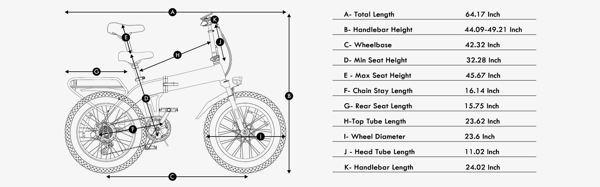 - TIRES: 20x4.0" Puncture Resistant Fat Tire